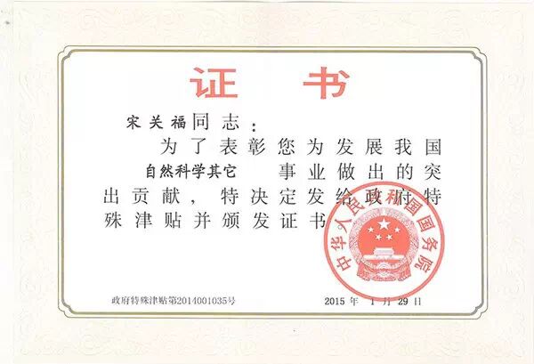 今年由国务院总理李克强主持召开的国务院常务会议共审议批准了4914名作出突出贡献的专家、学者和技术人员享受2014年政府特殊津贴,其中北京市共有101名专家入选。此次入选的宋关福博士是我国GIS软件研发带头人之一,先后承担863等国家级科研项目10余项,荣获了国家科技进步二等奖、北京市科学技术奖一等奖、测绘科技进步奖(省部级)二等奖,地理信息科技进步奖(省部级)一等奖等多项荣誉。