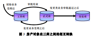通过上面两个例子,可以对房产信息系统中的工作库、正式库、历史库作如下定义:
